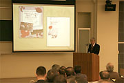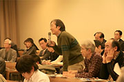 まず、愛知県環境部の伊藤勝至技監が「COP10の成果を生かした地域づくり」をテーマに、愛知県の持続可能な自然環境保全戦略と、その取り組みプランについて報告しました。続いて、元知多市八幡中学校校長の鈴木操さんが「帰っておいで、ごんぎつね 〜平成のごん(狐)は岡田に生息していたのか〜」と題して講演。江戸時代の面影を残す知多市岡田地区でのキツネの生息に関する情報を、写真や手書きのイラストも交えながら話しました。知多半島を舞台にした新美南吉の童話「ごん狐」にも描かれ、一時は知多半島から姿を消していたキツネの話題に、参加者は目を輝かせて聞いていました。また、財団法人日本生態系協会の城戸基秀地域計画室長は、知多半島の生態系を代表する動植物について、その生物多様性再生の可能性を「ポテンシャルマップ」を示しながら説明を行いました。