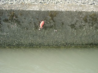 卵塊は写真右端に少し見える側溝に付いていました