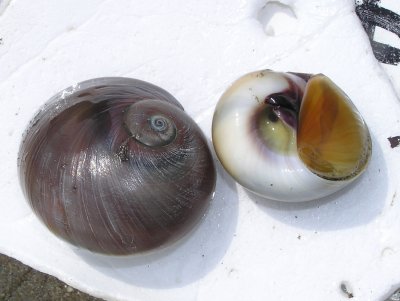 【右】イボニシです。イボニシは肉食でフジツボなどを食べます。