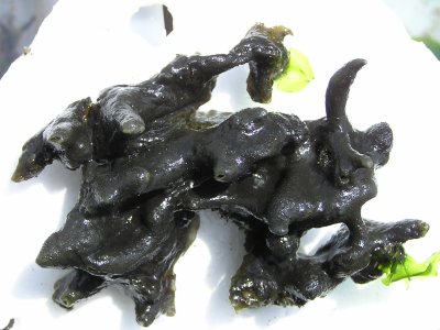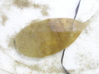 【右】タマシキゴカイ別名クロムシの卵塊です。子供たちが触って喜びます。