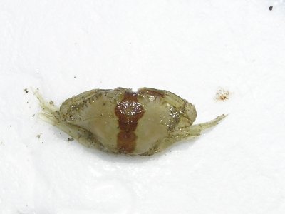 【右】ワタリガニの仲間のガザミの赤ちゃんが死んでいました。