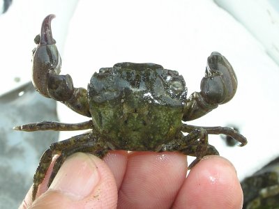 【右】ハサミのところに毛が付いた、ケフサイソガニです。少し汚れたところまで生活することができます。