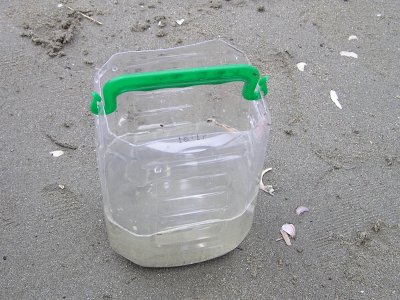 【左】お母さんがペットボトルの空き瓶を利用してバケツを作ってくれました。アイデア賞です。