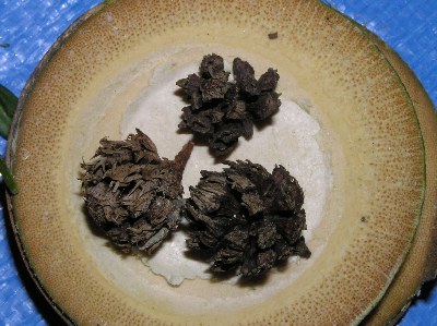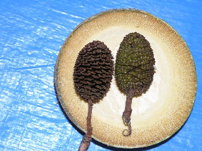 【右】ヤシャブシの球果です。マツカサに似て、裸子植物から変化したのがわかります。