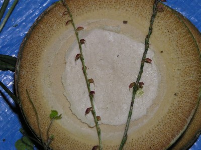 【左】ハンノキの実です。水気が好きです。新潟県では稲掛けのハゼにする木に利用しています。