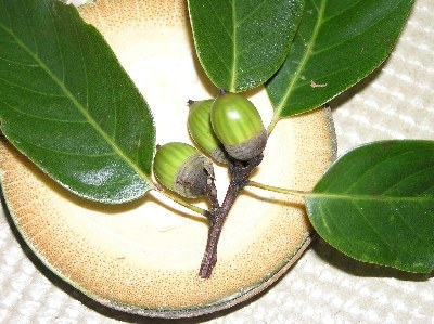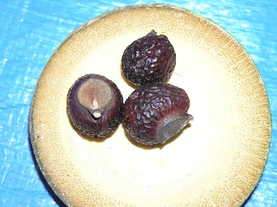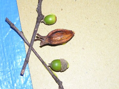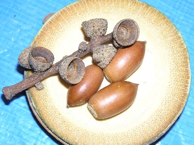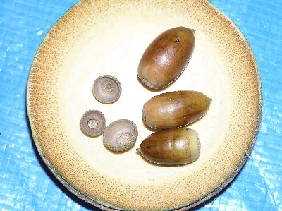 【左】アベマキです。殻斗(かくと)に入っているのはクリシギゾウムシで炒って食べるとおいしいです。