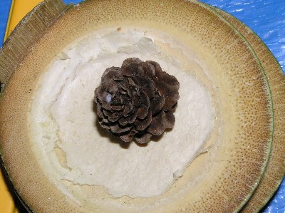【左】カラマツの球果です。箭比神社にはありません。だれかのプレゼント?