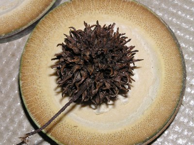 【左】フウの実です。箭比神社にはありません。楓(ふう)と槭樹(カエデ)別の植物です。
