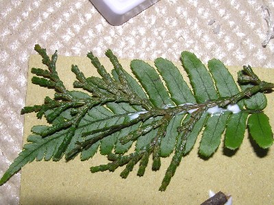 【右】スギです。線香はこれのみどりの葉でつくります。
