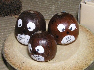 【右】ムクロジの種子です。昔、石鹸として使われていました。追羽根の玉としても使われました。
