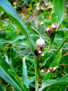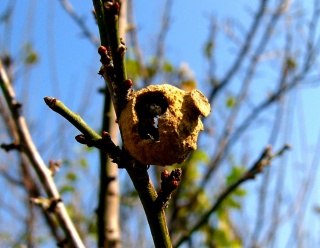 【右】羽化する前に攻撃されたトックリバチの巣がありました。