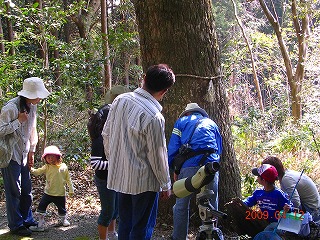 5月並みの暑い中、花や虫などを観察しました。今年も箭比神社へ向かう道の脇にはフモトスミレが満開でした。ご神木のアベマキの幹にキノボリトタテグモの巣を観察。ツブラジイやアベマキのドングリを拾ったり、シイの板根などを観察しながら神社の森を抜け草むらに出ました。ここでは子どもたちがタモを振りかざしモンキチョウ、モンシロチョウ、アゲハチョウなどを元気よく捕まえていました。さまざまなバッタの幼虫にも心惹かれていたようです。ナナホシテント(成虫・幼虫)やアマガエル、クサカゲロウなどにも出会えました。花は、セイヨウタンポポとニホンタンポポ、カラスノエンドウとスズメノエンドウ、カスマグサを見比べたりしました。帰りの森の中で珍しいクロコノマチョウに出会うことができました。最後に笹の葉で飴や笹舟を作って遊びました。(記・牧野)