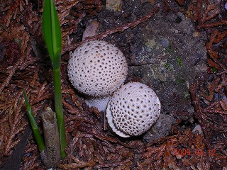 キノボリトタテグモ、アマガエル、ホコリタケ