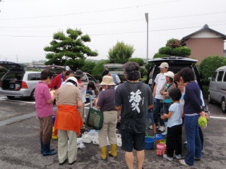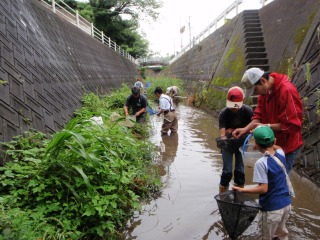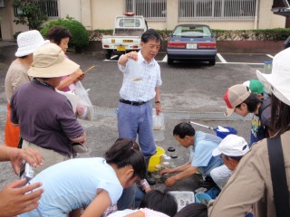 地上にゲットしたものを運んで、見ると、指導員のゲットした大きなドジョウやアメリカザリガニ、フナやオイカワに子どもたちはびっくりしていました。やっぱり、テクニックが違います。何回も参加するうちに子どもたちも上手になります。