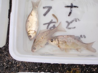 【左】フナ    【中】イシガメ    【右】ヨシノボリ