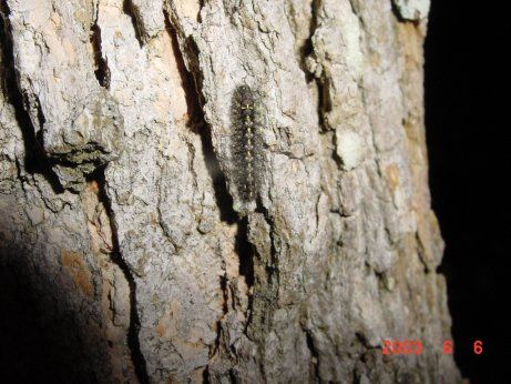No.2 マイマイガ発見。みなさんの家庭の庭木ににいるかも。糸でブランコしてる。
