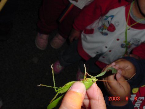 でした。やさしい虫だから噛(か)みつかないそうです。みんなでさわってみました。やわらかい足でした。