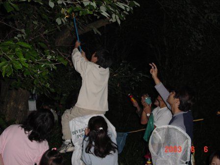 懐中電灯を持って、夜の自然観察ハイキングに出発しました。