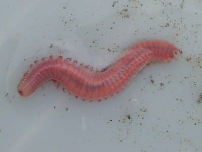 【右】ちぎれてしまったゴカイの仲間のイワムシです。釣り餌に使われます。