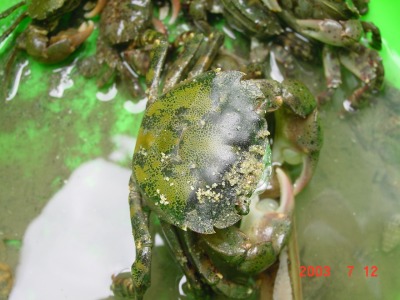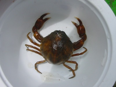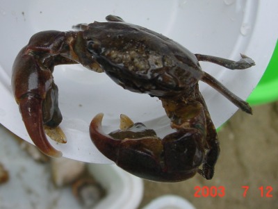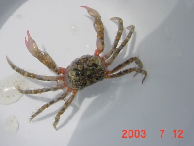 【右】イソガニです。成長したオスのハサミにはイボができます。