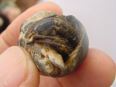 【左】ヤドカリの仲間でヨコバサミのなかまです。左右のハサミの大きさが同じです。