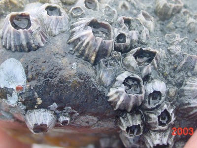 【左】シロスジフジツボで内湾の河口など海水が少し薄い所でよく見られます。