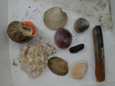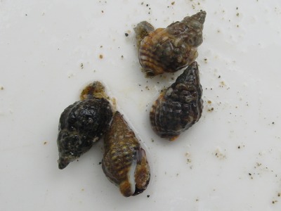 下に紹介したもの意外で見られた生き物。アナアオサ、アマモ、タテジマイソギンチャク、ヒラムシの仲間、イボニシ、タマキビガイ、マテガイ、ヨコエビ、スナガニ、イシガニの死がいなど。