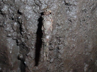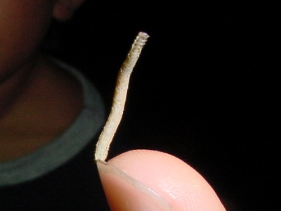 【左】3 ナイトハイクに出かけました。ミノムシが公園内のコンクリ−ト製の擬木についていました。