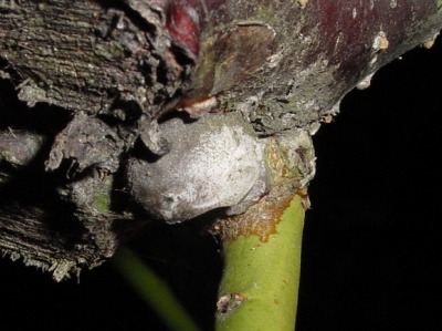 【右】4 梅の木にヒロヘリアオイラガのマユが付いていました。