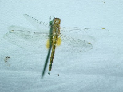 【左】ウスバキトンボです。熱帯に年中いるトンボで常に北へ勢力を伸ばそうとしていますが、このあたりでは冬越しができません。地球温暖化で冬越しができる範囲が広がっているそうです。