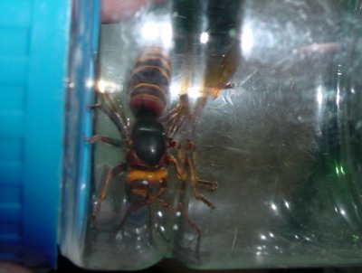 【右】驚きました。コガタスズメバチが4頭来ました。スズメバチに刺されると死に至ることがことがありますので注意をしましょう。