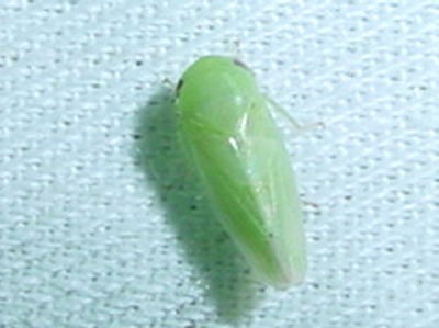 【右】アオズキンヨコバイです。ブドウに害を与えます。