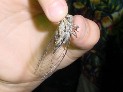 【右】昼間たくさん鳴いていたツクツクボウシが居眠りをしていました。