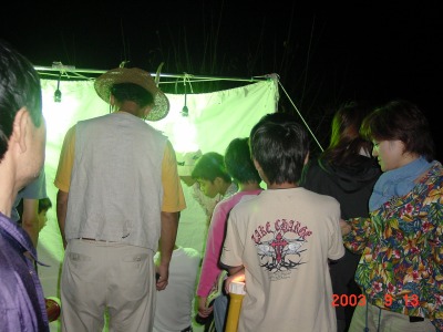 【右】ナイトハイクをして灯火採集をしている場所に到着しました。