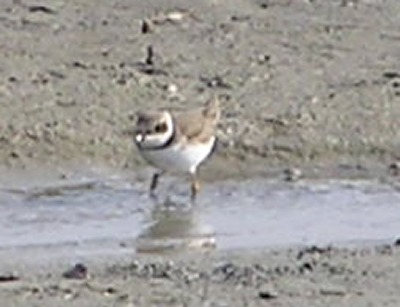 【右】干上がった、馬池にコチドリが千鳥足(ちどりあし)で餌を求めていました。千鳥足はこちらが先輩です。