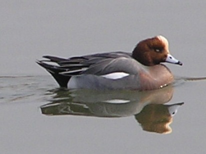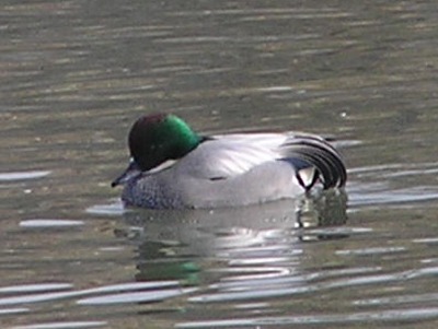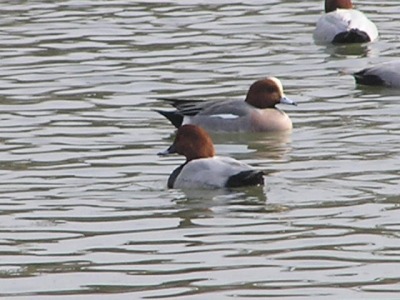 【右】ヒドリガモのオスです。全国的に各所で見られるカモです。名前はオスの頭の色、緋色(ひいろ)からだそうです