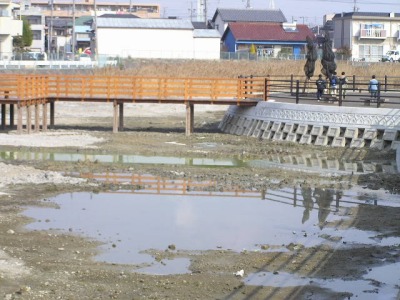 【右】馬池の周りに遊歩道が作られ人間にはやさしくなりました。しかし、他の生き物にはどうでしょう。冬に300羽以上来ていたカモさんは戻るでしょうか。