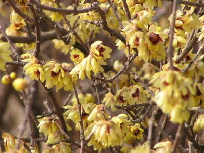 【左】ロウバイは別名唐梅(カラウメ)といわれ、中国原産の園芸植物です。