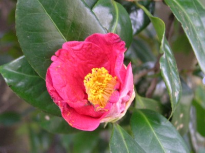 【右】ヤブツバキです。こちらもたくさん蜜を出します。ヤブツバキは花びらが固まって落ちます。