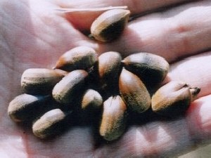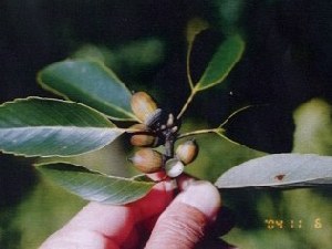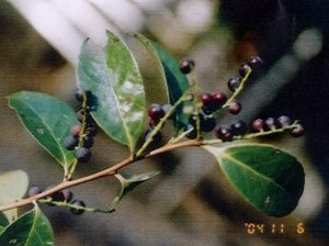 【左】ブルーベリーに近い仲間のシャシャンボです。これも子供たちのいいお八つになっていました。今がたべごろです。 【右】最後まで残っているドングリのアラカシです。たくさん実が付いていました。