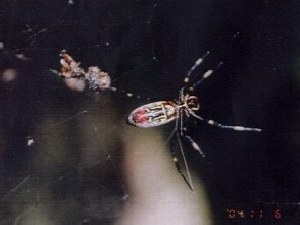 【左】シイの実です。おいしいお八つになります。栗より好きです。 【右】ジョロウグモは恋の季節です。大きいほうがお母さんです。
