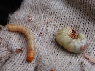 【左】クワガタの幼虫です。 【右】コクワガタのお父さんです。小型タイプみたいです。