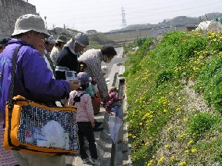 梅の館のロビーに集合し梅の館に隣接した農地を佐布里池へ観察しながら移動、梅の館へ11時30分頃に戻り全員で出会った生き物の確認をしました。