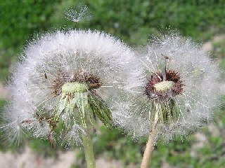 【左】セイヨウタンポポ(左)、アカミタンポポ(右)。いずれも外来種です。 【右】ナナホシテントウの蛹(サナギ)です。