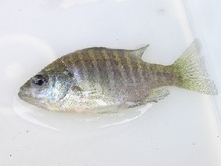 【左】今回一番多かったオイカワです。   【右】外来漁のブルーギルもたくさん採れました。困ったものです。