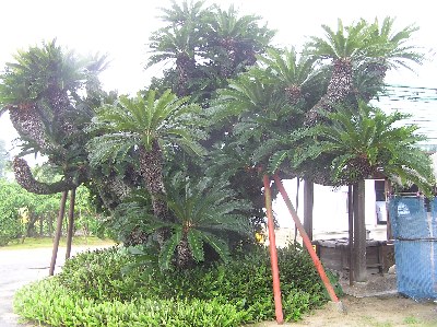 【左】大草公園入り口から南方を見た景色です。水田と一部休耕田があります。    【右】地蔵寺の大きなソテツです。