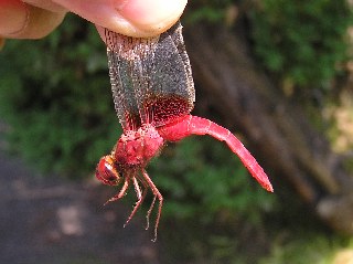 【右】ショウジョウトンボのお父さんは真っ赤ですが、赤とんぼの仲間ではありません。