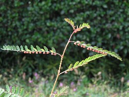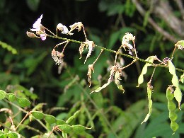 【右】北アメリカ原産のアレチヌスビトハギです。花はきれいですが種子がマジックテープ見たいに好く付きます。マジックテープはこの種の真似です。
