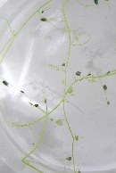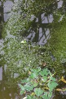 【中】砂季ノ脇池にオオバナイトタヌキモが生育していました。東南アジア原産でイトタヌキモに似ていますが花が大きく、体は糸みたいに細く華奢ですが繁殖力が強いみたいです。小さい袋でミジンコなどを捕獲し養分にする食虫植物です。