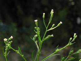 【左】オオアレチノギクです。南アメリカの原産で、昭和初期に帰化したといわれています。